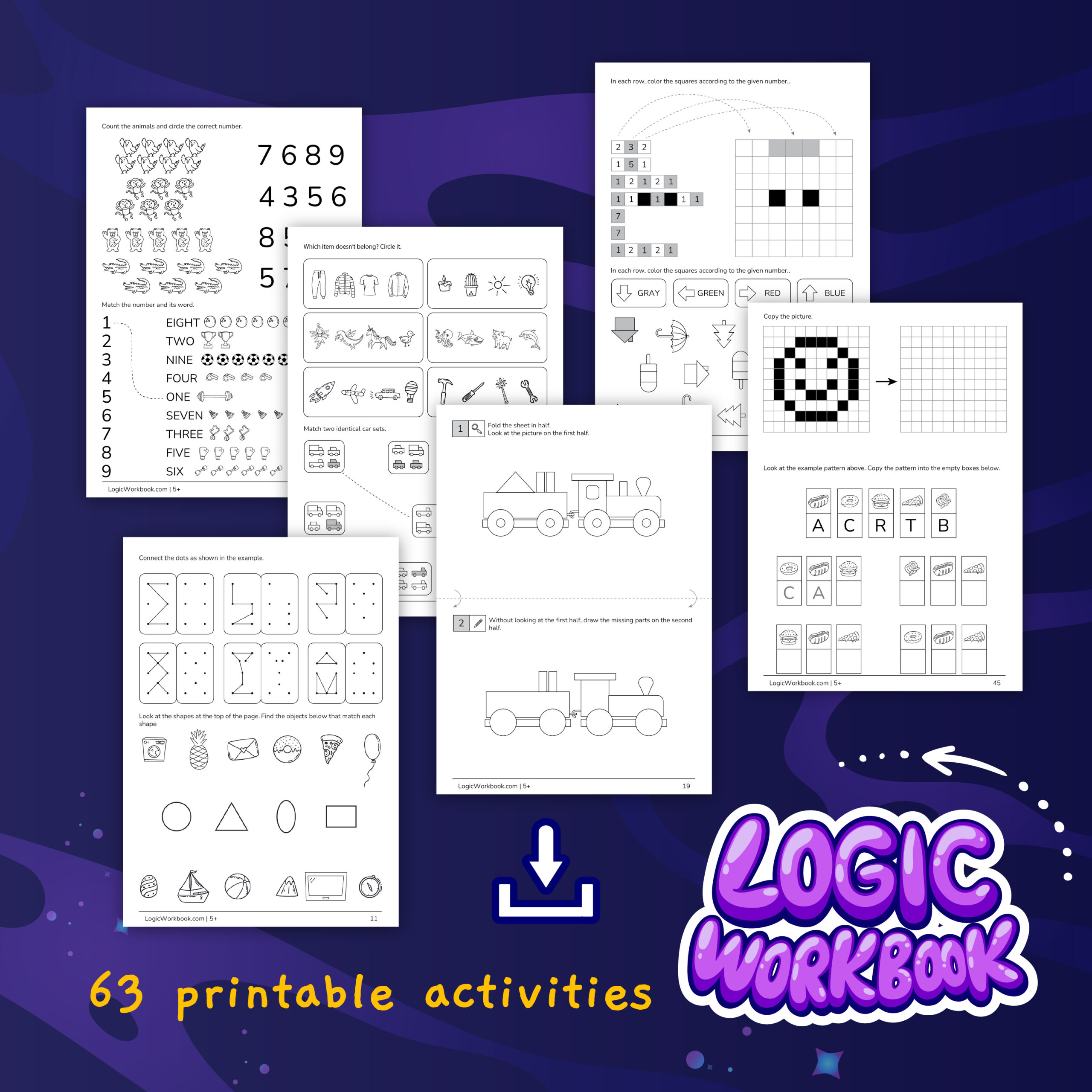 Give your child the gift of learning and problem-solving with the Logic Workbook 5+! 🚀